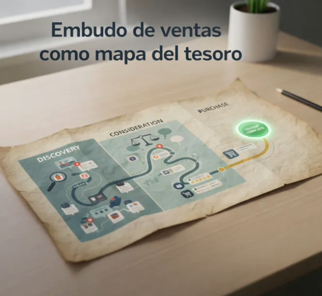 Un embudo es como un mapa del tesoro: lleva al usuario de la curiosidad hasta el “pago completado”.
