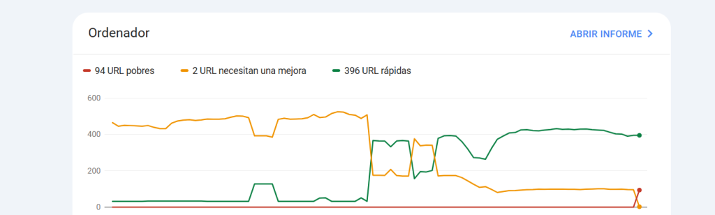 - 396 URL rápidas, frente a un número mínimo de páginas que necesitan mejora.