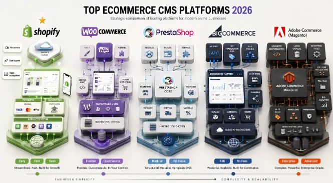 Elegir el CMS equivocado puede costarte ventas, tiempo y dinero. No es una decisión menor: la plataforma que elijas va a condicionar la velocidad de tu tienda, la capacidad de tu equipo para gestionar el día a día, las integraciones disponibles y tu margen de crecimiento a medio plazo.